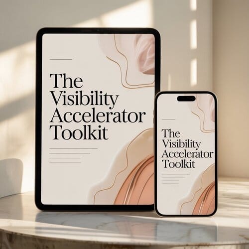 The Visibility Accelerator Toolkit is a streamlined, power-packed digital resource designed to help women entrepreneurs quickly increase their online visibility with AI-assisted content creation, magnetic brand positioning, and consistent, cohesive messaging that actually converts.