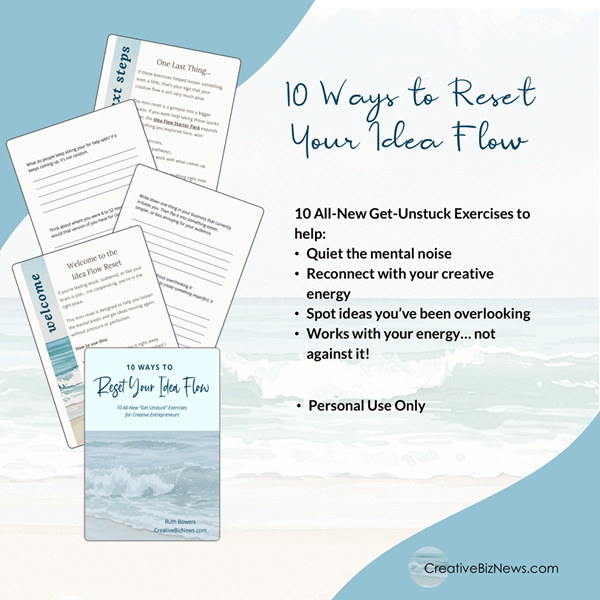The Idea Flow Reset is a quick creative reset for soulpreneurs who feel stuck or scattered. This mini kit includes simple exercises to help you clear mental clutter, reconnect with your ideas, and get back into creative flow... no pressure or overthinking required.